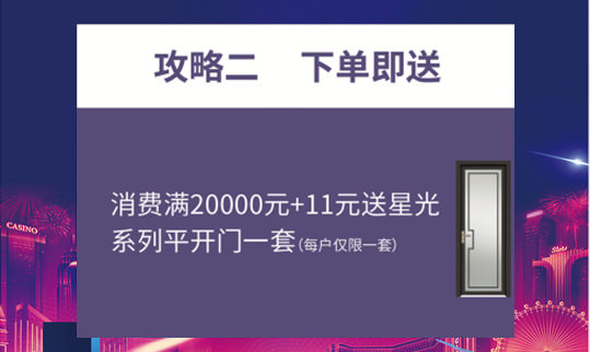 进店主顾(gu)花费满20000元,便(bian)可享用11元购ꦯ代价1980元的(de)星(xing)光系列平开门一(yi)套;